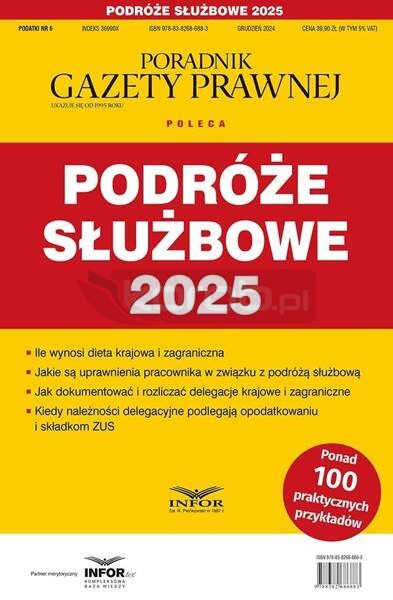 "Podróże służbowe 2025" to publikacja, która powinna się znaleźć w każdym dziale kadr i HR. To przystępne i wyczerpujące opracowanie pomoże w pracy specjalistom z zakresu kadr i płac, kadrowym i księgowym. Zainteresuje też pracodawców oraz biura rachunkowe, które prowadzą obsługę w tym zakresie. Czytelnik dowie się z tej publikacji: jak prawidłowo sporządzić regulamin podróży służbowych, kiedy mamy do czynienia z podróżą służbową, jakie okresy podróży służbowej zaliczamy do czasu pracy, jak rozliczać delegację krajową po zmianach przepisów, jak rozliczać zagraniczne podróże służbowe. Podróż służbowa polega na wykonywaniu na polecenie pracodawcy zadania służbowego poza miejscowością, w której znajduje się stałe miejsce pracy pracownika lub w której znajduje się siedziba pracodawcy. Z tego tytułu pracownikowi przysługują należności na pokrycie kosztów związanych z tą podróżą. Są to diety oraz zwrot kosztów przejazdów, dojazdów środkami komunikacji miejscowej, noclegów oraz innych niezbędnych udokumentowanych wydatków. Prawidłowe dokumentowanie oraz rozliczanie kosztów podróży służbowych i związanych z nimi wydatków często sprawia kłopoty służbom kadrowo-płacowym.