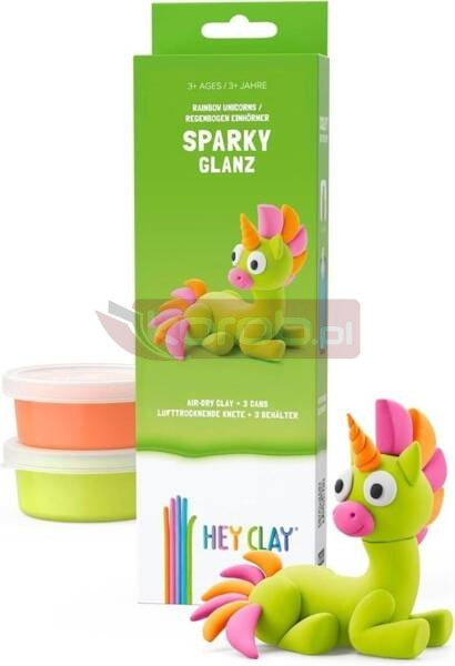 Hey Clay zawiera 3 pojemniki z miękką, delikatną i pachnącą masą oraz kod dostępu do aplikacji. Kolory przedstawione są na opakowaniu, pozwalają na stworzenie wybranej figurki. Pewna ilość masy pozostaje, można ją użyć do realizacji własnych kreatywnych pomysłów. Masa wysycha na powietrzu w przeciągu 24 godzin.