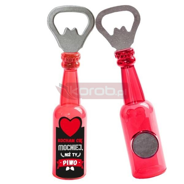 Otwieracz do piwa z magnesem i zabawnym napisem "Kocham Cię mocniej niż Ty piwo" to praktyczny i humorystyczny upominek, który wywoła uśmiech na twarzy każdego miłośnika piwa. Idealnie sprawdzi się na imprezach, grillach czy rodzinnych spotkaniach, a dzięki wbudowanemu magnesowi można go wygodnie przechowywać na lodówce, zawsze w zasięgu ręki. Wykonany z trwałego metalu oraz tworzywa sztucznego, łączy funkcjonalność z estetycznym i zabawnym designem. To świetny prezent dla męża, chłopaka lub każdego, kto doceni praktyczne gadżety z przymrużeniem oka.