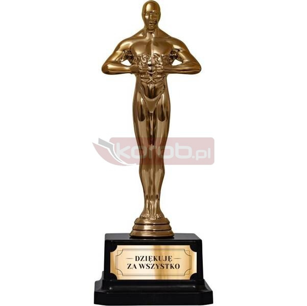 Personalizowana statuetka na prezent z napisem (dedykacja widoczna na zdjęciu). Odkryj wyjątkowy sposób, aby wyrazić swoje uczucia - z naszym personalizowaną statuetką na prezent z napisem. Idealna dla każdej ważnej i wyjątkowej osoby Twoim życiu, bez względu na okazję. Świetnie sprawdzi się jako upominek na szereg okazji. Wygląd statuetki: Ta elegancka złota statuetka urzeka swoją elegancką, stylową kolorystyką i modnym designem. Złoty odcień, wzbogacony czarnym napisem, nadaje jej wyrafinowany charakter. Unikalny napis nadrukowany na statuetce, dodaje osobistego akcentu. Specyfikacja: Materiał: Tworzywo sztuczne, plastik Kolor postumentu: Czarny Wysokość: 19,5 cm Grawer na laminowanej naklejce umiejscowionej na statuetce wykonywany jest techniką laserową