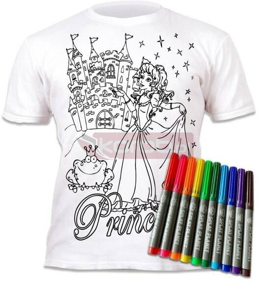 Każde opakowanie zawiera koszulkę i zestaw 10 magicznych pisaków do kolorowania. Pisaki są nietoksyczne i zmywalne. Po zakolorowaniu koszulki można ją wyprać i pokolorować od nowa. Koszulki występują w kilku rozmiarach. Materiał: 100% bawełna. Kolory mazaków: Różowy, niebieski, granatowy, pomarańczowy, czerwony, zielony, ciemnozielony, fioletowy, brązowy i żółty.