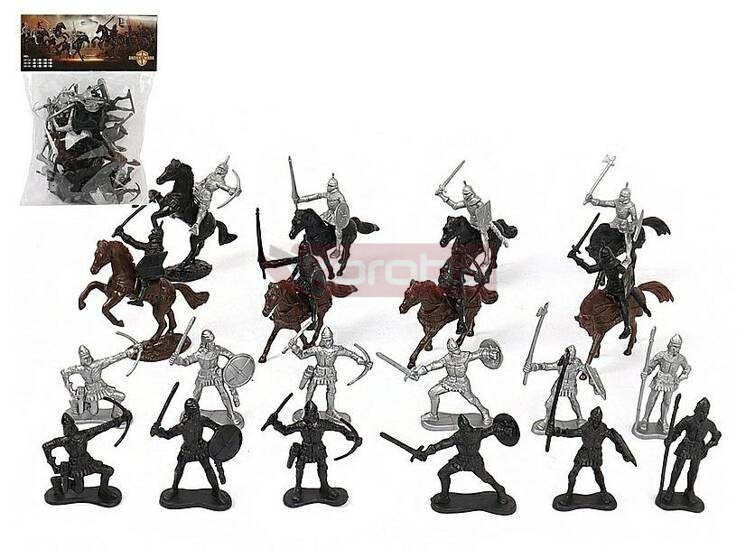 zestaw figurek rycerzy i koni, 28 części; PVC