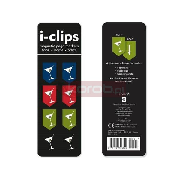 Zakładka magnetyczna marki Peter Pauper Press, którą można także zastosować jako magnes, klips. Na odwrocie każdej zakładki jest strzałka, która pozwala dokładnie zaznaczyć miejsce, gdzie skończyliśmy czytać. Nie wysuwają się z książki, są trwałe i ekonomiczne.