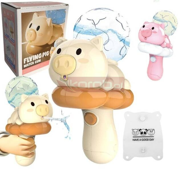 Pistolet na wodę w kształcie uroczej świnki na chmurce to podstawowa zabawka podczas letnich przygód na świeżym powietrzu. Niezastąpiony zarówno na podwórku, basenie, jak i podczas kąpieli zapewnia niekończącą się dawkę radości i ochłody podczas upalnych dni.