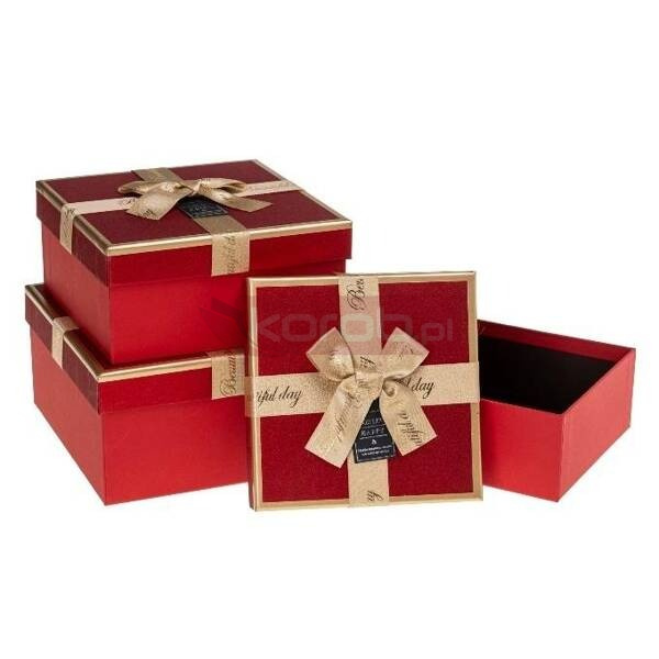 Zestaw pudełek prezentowych z kokardą 3szt czerwony