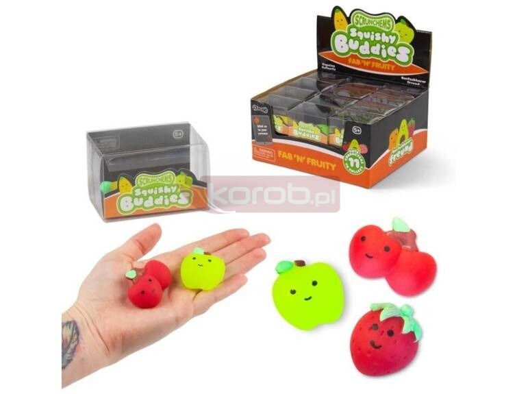 Ściskaj dzień z Owocowymi Przyjaciółmi Scrunchems! Te urocze, owocowe przytulanki to soczysta nowość w kolekcji Scrunchems. Zestaw CDU zawiera 24 sztuki w 11 różnych wzorach, z każdą postacią posiadającą nieodparcie uroczy, kawaii uśmiech. Zanurz się w owocowej zabawie i zbierz je wszystkie, by cieszyć się squishylicious chwilami!