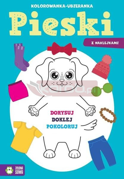 Wesołe kolorowanki z dodatkową aktywnością. Najpierw dziecko ma za zadanie dorysować zwierzątku ubranie, a następnie pokolorować ilustrację i ozdobić ją naklejkami.