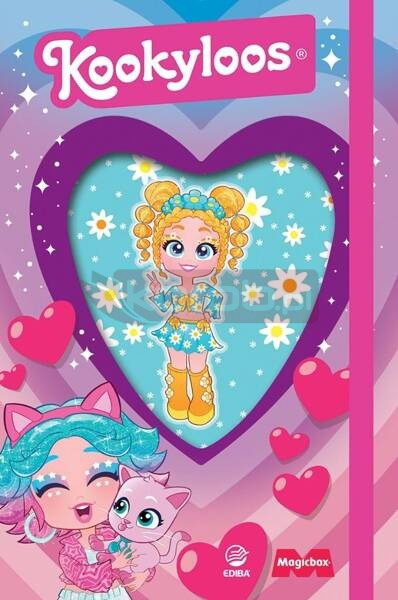 Książka aktywnościowa dla dziewczynek do zabawy osobno lub z lalką Kookyloos. Treść daje możliwość uzupełniania i kolorowania rysunków oraz poznawania laleczek z kolekcji zabawek. Otwór w kształcie serca w okładce i w stronach pozwala na ułożenie w nim lalki i przekręcanie stron w trakcie zabawy bez usuwania lalki. Karty z postaciami 8 laleczek na końcu książki dają możliwość zmiany wizerunku lalki w otworze na okładce.