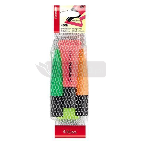 Kieszonkowy zakreślacz o bardzo oryginalnym kształcie. Dostępny w 4 fluorescencyjnych kolorach. Duża odporność na zasychanie - pozostawiony bez skuwki nie zasycha nawet przez 4 godziny. Grubość linii 2-5 mm. Plastikowe opakowanie zawierające 4 szt. zakreślaczy w kolorach: żółtym, zielonym, różowym i pomarańczowym.