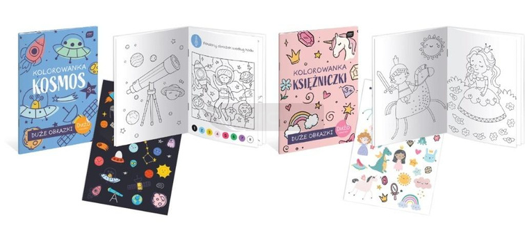 Kolorowanka A4/16K z naklejkami kosmos,księżniczki