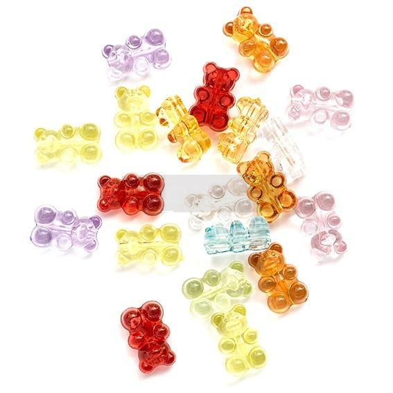 Koraliki z akrylu w formie słodkich misiów w transparentnych, delikatnych kolorach to piękny dodatek do dziecięcej biżuterii i innych prac kreatywnych.
