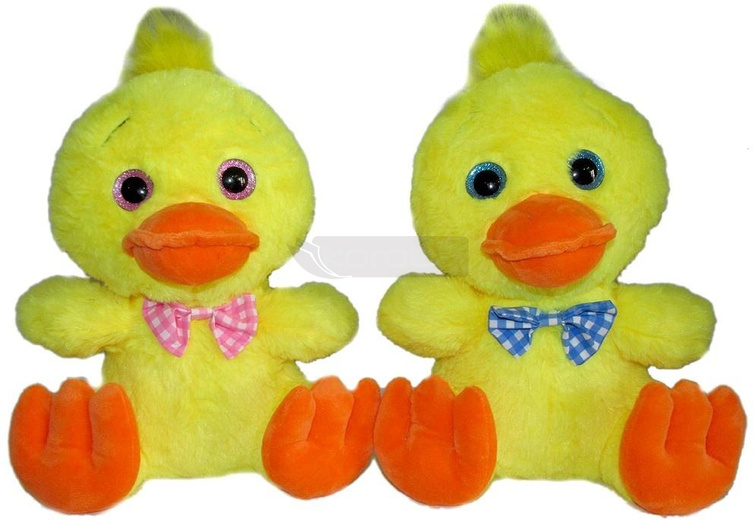 Pluszak kaczuszka. Puchata i milutki. Wielkość: 20cm. Maskotka dźwiękowa - wydaje głos po naciśnięciu przycisku. Cena za sztukę.