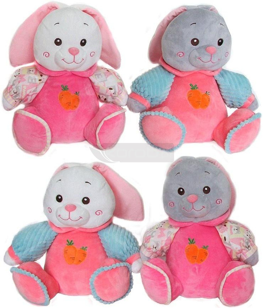 Maskotka zajączek z serii dla najmłodszych. Wielkość maskotki 32cm. Dostępna w czterech odmianach kolorystycznych. Cena dotyczy 1 sztuki. Informację o wybranym modelu prosimy podać w uwagach do zamówienia.