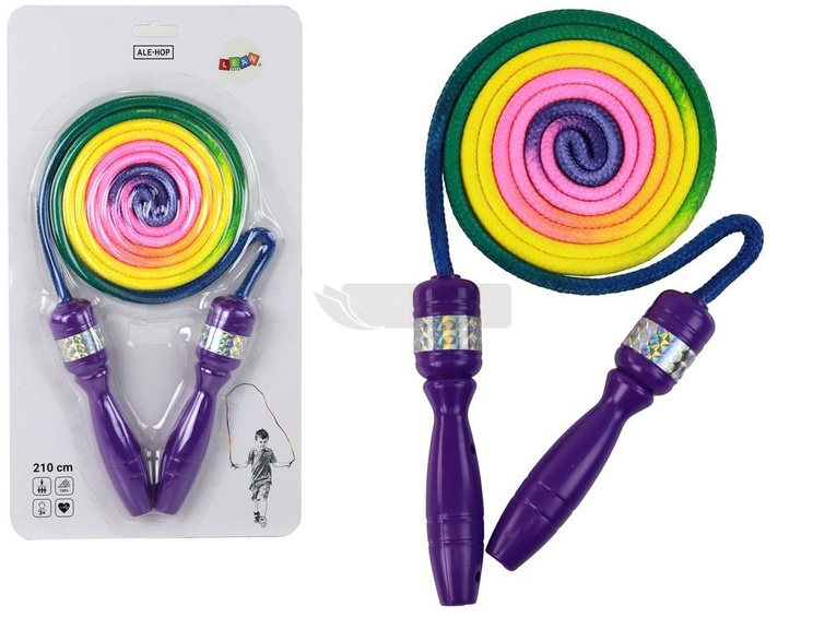 Tęczowa Skakanka Fioletowe Rączki Ruch Koordynacja Ruchowa Pragniemy zaoferować Państwu niezwykłą skakankę w kolorach tęczy z fioletowymi uchwytami. Skakanka, choć jedna z najprostszych zabawek, utrzymuje swoją popularność przez dekady, ciesząc zarówno dzieci, jak i rodziców. Skakanie to nie tylko rozrywka - to także doskonała forma ćwiczeń, która korzystnie wpływa na kondycję fizyczną dziecka. Regularne korzystanie ze skakanki nie tylko wzmacnia mięśnie nóg i rąk, ale także pomaga w rozwoju koordynacji motorycznej. Nasza skakanka wyróżnia się nie tylko funkcjonalnością, ale także estetyką. Barwne tęczowe kolory skakanki nadają jej radosnego charakteru, tworząc przy tym atrakcyjny wygląd, który przyciąga uwagę najmłodszych. Skakanka, będąc tradycyjną zabawką, nie traci swojego uroku. Wręcz przeciwnie - staje się elementem, który łączy pokolenia, przynosząc radość zarówno najmłodszym, jak i tym nieco starszym, przechodzącym przez wspomnienia swojego dzieciństwa. Kupując naszą skakankę, inwestujesz nie tylko w zabawę, ale także w zdrowy rozwój swojego dziecka. Długość skakanki to 210cm. Wymiary opakowania: 34,5cm x 19cm x 3cm Posiada certyfikat CE, ponadto jest zgodny z normą EN71. Przeznaczony dla dzieci powyżej 3 roku życia.