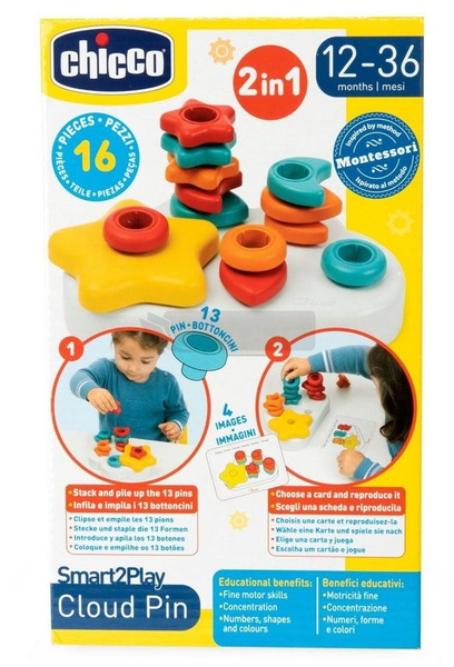 - Zabawa edukacyjna: zestaw zawiera karty z grafiką, które pomagają dziecku nauczyć się układać wpinki według określonych wzorów, wspomagając rozwój umiejętności logicznych i naukę kolorów, liczb oraz kształtów.