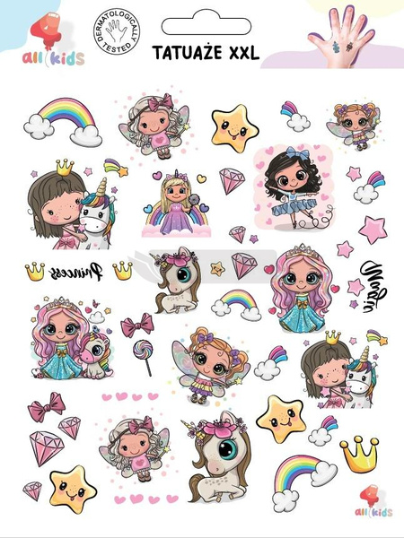 Tatuaże zmywalne dla dzieci Księżniczki XXL