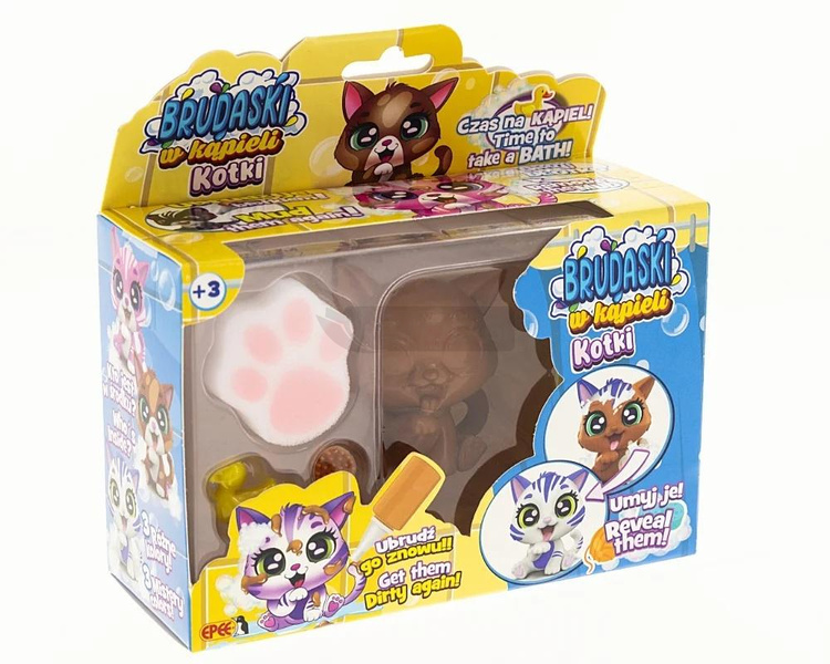 Poznaj kolekcję przesłodkich kotków, które można brudzić błotkiem, myć i zaczynać całą zabawę od nowa! Brudaski w kąpieli kotki to urocze figurki, które zostały stworzone po to, by zapewnić dzieciom mnóstwo radości i niezliczone możliwości kreatywnej zabawy. Dzięki specjalnej powłoce łatwo je wyczyścić, a zabawę ulepszą dołączone do kotków akcesoria.
