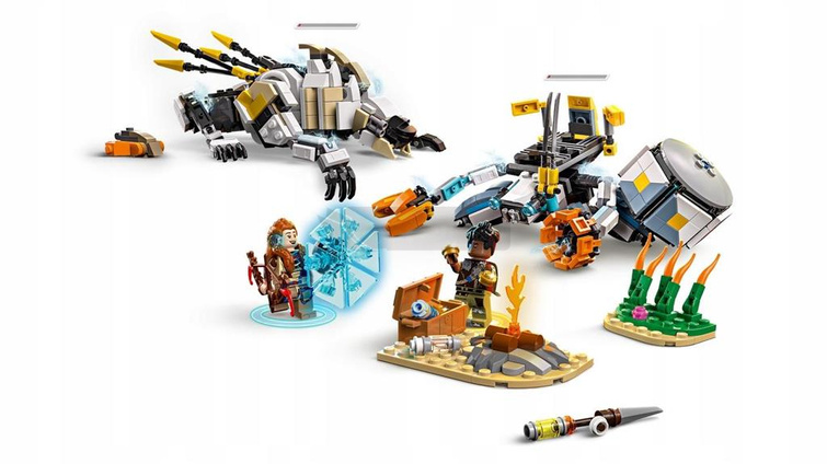Ten zestaw LEGO jest oparty na grze wideo LEGO Horizon Adventures i zawiera dwie minifigurki: Aloy i jej lojalnego pomocnika Varla. Aloy jest uzbrojona w łuk, a Varl we włócznię. Każda broń ma ulepszenia, które można dodać, aby umożliwić atak ogniem, chłodem lub wstrząsem — tak jak w grze wideo. W zestawie znajdują się również dwa roboty do zbudowania. Krabołazma ruchome nogi i ramiona, otwierane szczypce oraz odłączany pojemnik i tarczę energetyczną. W pełni ruchomy piłoząb ma otwierane szczęki, obrotowy tułów oraz ruchomą szyję, głowę i nogi. Wysokie trzciny, ognisko, skrzynia ze skarbami i inne akcesoria inspirują do twórczej zabawy. Warto także zapoznać się z aplikacją LEGO Builder, która zapewnia cyfrową rozrywkę podczas budowania.