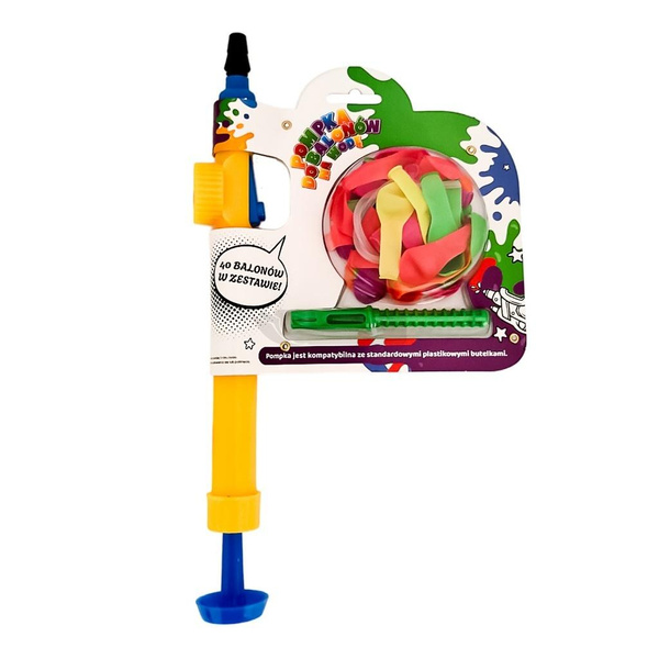 Pompka wodna z balonami. Wymiary: 17,0 x 31,0 cm. Materiał: tworzywo sztuczne, silikon. W zestawie: pompka 1 szt., balony 40 szt.