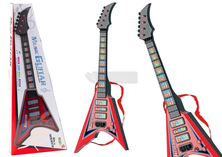 Gitara Elektryczna Dla Dzieci Światła Melodie Czerwona Elektryczną gitarę dla dzieci w żywym czerwonym kolorze, idealną do wprowadzenia najmłodszych w świat muzyki. Gitara przyciąga uwagę nie tylko swoim designem, ale także kolorowymi efektami świetlnymi, które dodają każdemu występowi wyjątkowego uroku. Te świetlne efekty to doskonały sposób na stworzenie prawdziwej koncertowej atmosfery w domowym zaciszu. Instrument jest wyposażony w wgrane melodie, które umożliwiają dzieciom grę na gotowych podkładach muzycznych. Dzięki temu mogą one eksperymentować z różnymi dźwiękami i rozwijać swoje zdolności rytmiczne. Melodie te mogą także inspirować do tworzenia własnych kompozycji i improwizacji. Dodatkowym atutem gitary jest opaska na ramię, która pozwala dziecku wygodnie przewiesić instrument, co ułatwia grę na stojąco. Jest to nie tylko funkcjonalne, ale także daje młodym muzykom poczucie profesjonalizmu i swobody ruchu. Gitara jest lekka i dostosowana do małych dłoni, co sprawia, że jest łatwa w obsłudze nawet dla najmłodszych dzieci. To doskonały wybór dla początkujących muzyków, który łączy naukę z zabawą. Gitara rozwija kreatywność, wyobraźnię i umiejętności muzyczne, stanowiąc jednocześnie świetne narzędzie do wyrażania siebie i rozwijania pasji muzycznej. Gitara zasilana jest na baterie 3x 1.5V AA, które nie są elementem zestawu. Wymiary gitary: 54cm x 17,5cm x 4,5cm Wymiary opakowania: 55cm x 20cm x 6cm Posiada certyfikat CE, ponadto jest zgodny z normą EN71. Przeznaczony dla dzieci powyżej 3 roku życia.