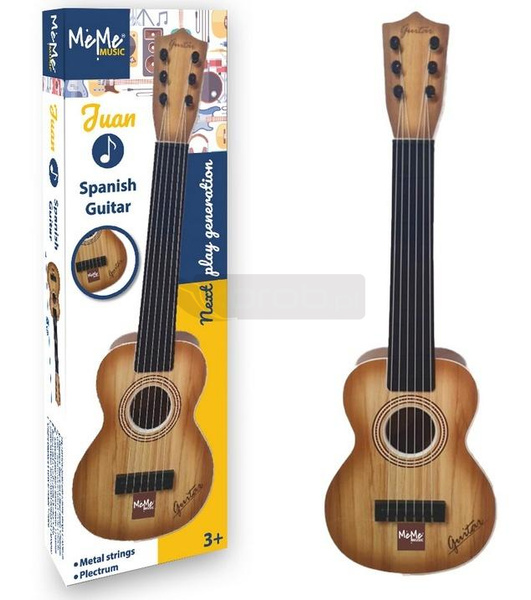 Plastikowa gitara hiszpańska zawierająca 6 metalowych strun.