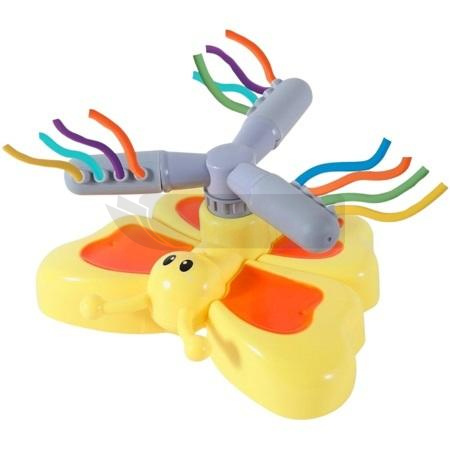 2 opcje zraszania: Zabawka wyposażona jest w dwa rodzaje głowic - jedną z kolorowych, elastycznych rurek, które poruszają się pod ciśnieniem wody, rozpryskując ją wokół siebie, oraz drugą z wiatraczkiem, który obraca się o 360. Otwory wiatraczka umożliwiają regulację kierunku strumienia wody, co daje kontrolę nad wodną zabawą. By rozpocząć zabawę, wystarczy podłączyć do motylka wąż ogrodowy i włączyć wodę, a motylek będzie rozpraszać wodę wokół pod wpływem ciśnienia wody. Zraszacz nie potrzebuje źródeł zasilania, do działania zabawki wystarczy siła ciśnienia wody.