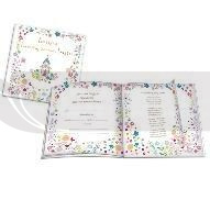 Książeczka Komunijna w formacie 21,5 x 21,5 cm. Oprawa twarda złocona. Autorskie ilustracje, własny dobór tekstów. Książeczka 12-nasto stronicowa z kopertą na pieniążki.