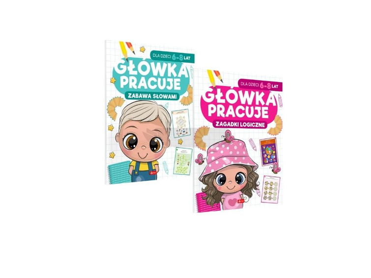Główka pracuje. Zabawa słowami Na nudę, odpoczynek i dobrą zabawę? Książki z serii "Główka pracuje" sprawdzą się w każdej sytuacji. Każda z publikacji zawiera grubo ponad 100 łamigłówek, zagadek i zadań, przy których trzeba ruszyć głową. Seria "Główka pracuje" stanowi doskonałe wsparcie procesu edukacji wczesnoszkolnej. Obszerny zbiór ciekawych zadań o różnym poziomie trudności kształtuje wiadomości i umiejętności poznawcze oraz uczy radzenia sobie z trudnościami. To prawdziwa szkoła logicznego myślenia. Główka pracuje. Zagadki logiczne Każda z publikacji zawiera grubo ponad 100 łamigłówek, zagadek i zadań, przy których trzeba ruszyć głową. Seria "Główka pracuje" stanowi doskonałe wsparcie procesu edukacji wczesnoszkolnej. Obszerny zbiór ciekawych zadań o różnym poziomie trudności kształtuje wiadomości i umiejętności poznawcze oraz uczy radzenia sobie z trudnościami. To prawdziwa szkoła logicznego myślenia