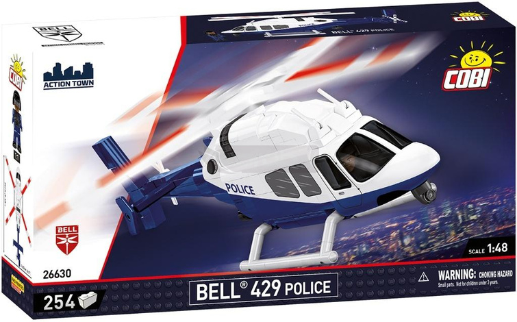COBI- 26630 BELL 429 - POLICE ACTION TOWN 254 elementów Grupa wiekowa 7+ Skala: 1:48. Model Bell 429- Police uzupełnia odświeżoną kolekcje ACTION TOWN od COBI! Bell 429 to maszyna charakteryzujący się wyjątkową prędkością, zasięgiem oraz osiągami w zawisie. Jego niezawodność i wydajność czynią go nieocenionym narzędziem w akcjach, gdzie każda sekunda ma znaczenie. Zestaw w skali 1:48 pozwala stworzyć model wielozadaniowego śmigłowca, który wykorzystywany jest na całym świecie przez służby policyjne i ratunkowe. Model BELL 429 - Police, wyposażony w charakterystyczne oznaczenia i innowacyjne detale, doskonale odwzorowuje autentyczną wersję wykorzystywaną przez służby mundurowe. Dzięki intuicyjnej instrukcji młodsi i starsi pasjonaci budowania będą mogli łatwo stworzyć ten imponujący model. Ten wyjątkowy helikopter, składający się z 254 elementów, oferuje wierność oryginałowi oraz nowe, specjalnie zaprojektowane dla tego modelu klocki, takie jak kokpit śmigłowca. Bell 429 - Police to model, który łączy w sobie pasję do maszyn latających, edukację i świetną zabawę. Idealny prezent dla każdego fana helikopterów, klocków i modeli! Sprawdź i wyszukaj inne pojazdy z serii ACTION TOWN od COBI i twórz własną kolekcję niezawodnych maszyn! 254 wysokiej jakości elementy, Wyprodukowane w UE przez firmę z ponad 35-letnią tradycją, Spełniają normy bezpieczeństwa dotyczące produktów dla dzieci, W pełni kompatybilne z innymi markami klocków konstrukcyjnych, Czytelna i intuicyjna instrukcja oparta na rysunkach i ikonach, Wymiary modelu: 24 8,0 16,5 cm Wymiary pudełka: 33,2 6,0 18 cm.