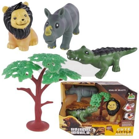 Zestaw zwierzątek, który składa się z lwa, krokodyla, hipopotama i uroczego drzewka, to niezwykła okazja dla dzieci, by wyruszyć w egzotyczną podróż do świata dzikiej przyrody.