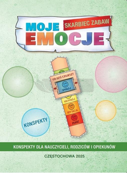 Szesnastostronicowa książeczka napisana przez familiolożkę, mamę dwóch córek (Agnieszkę Delakowicz-Borek) oraz trenerkę komunikacji empatycznej, mamę trzech synów (Beatę Kociołek) zawiera konspekty zajęć dla dzieci w wieku przedszkolnym a nawet wczesnoszkolnym. Konspekty tworzą całość z kolorowankami MOJE EMOCJE i MOJE KOLOROWE EMOCJE oraz wkrótce MOJE BLISKIE EMOCJE, ale można z nich też korzystać niezależnie. Zajęcia w konspektach podzielone są według rodzaju aktywności - począwszy od zajęć opartych na rozmowie, poprzez ruch, zajęcia plastyczne aż po relaksacje. Proponowane zabawy nadają się zarówno do prowadzenia zajęć grupowych, jak i indywidualnych. Użyteczne mogą być w pracy nauczycieli wychowania przedszkolnego, psychologów, pedagogów oraz wspierające budowanie relacji rodzinnych. We wstępie autorki piszą: "Mamy nadzieję, że "Moje Emocje - Skarbiec zabaw" będzie wspierał tworzenie bezpiecznej przestrzeni do rozwoju emocjonalnego naszych dzieci, ale także towarzyszących im dorosłych. Zabawa to przecież najlepszy i najskuteczniejszy sposób na naukę.