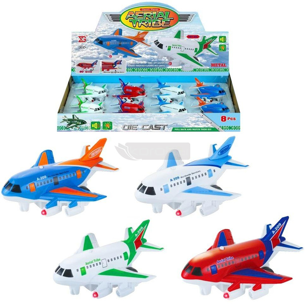 Metalowe Samoloty z Napędem Pull-Back - Zestaw 8 Sztuk - Dźwięki i Światła Przenieś się w świat podniebnych akrobacji z tym niesamowitym zestawem samolotów! Samolot z napędem pull-back to idealna propozycja dla małych i dużych fanów lotnictwa. Realistyczne modele, wykonane z dbałością o szczegóły, zapewnią mnóstwo frajdy podczas zabawy. Dodatkowo, samoloty wydają dźwięki startu i posiadają migające czerwone światełka, co uatrakcyjnia zabawę. Zalety produktu: Napęd pull-back: Wystarczy pociągnąć samolot do tyłu i puścić, aby ruszył do przodu z impetem. Efekty dźwiękowe i świetlne: Samoloty wydają dźwięki startu i posiadają migające czerwone światełka. Różne modele w zestawie: Zestaw zawiera 8 różnych modeli samolotów, co urozmaica zabawę. Idealne do zabawy i kolekcjonowania: Samoloty mogą służyć zarówno do zabawy, jak i jako element dekoracyjny. Rozwija wyobraźnię i kreatywność: Dziecko może wymyślać własne scenariusze lotniczych przygód. Idealne na prezent: Doskonały pomysł na prezent dla dzieci i dorosłych miłośników lotnictwa. Specyfikacja: Materiał: Metal (die cast) Wiek: 3+ Funkcje: Napęd pull-back, efekty dźwiękowe i świetlne Zestaw zawiera: 8 metalowych samolotów z napędem pull-back Wymiary: 12x11x6 cm Oferta dotyczy 1 szt samolotu Metalowe samoloty to doskonały sposób na rozwijanie pasji do lotnictwa i kreatywną zabawę. Zapewnij sobie lub bliskiej osobie radość z posiadania własnej kolekcji realistycznych samolotów z efektami specjalnymi!