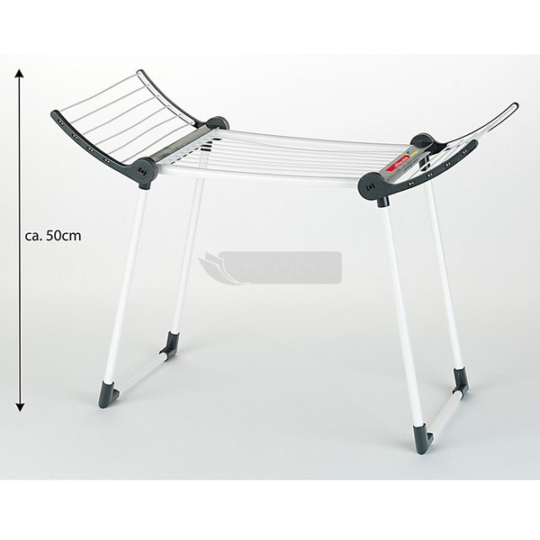 Suszarka do ubrań powstała na licencji firmy Vileda, dlatego też jest wierną kopią prawdziwej suszarki tej marki. Zabawka jest w kolorze białym z granatowymi elementami i można ją także jak prawdziwą suszarkę złożyć do mniejszych rozmiarów, dzięki czemu nie zajmuje dużo miejsca, kiedy dziecko się nie bawi. Zabawka składa się z podwójnych nóg zapewniających jej stabilność oraz właściwej suszarki wyposażonej w dwa składane skrzydła. Wysokość rozłożonej suszarki to ok 50 cm, a łączna szerokość z rozłożonymi bocznymi skrzydłami wynosi około 65 cm. Niska waga i rozmiary zabawki sprawiają, że suszarka ta doskonale spełni swoją rolę do wieszania ubranek lalek, wypranych maskotek, czy nawet suszenia świeżo wypranych ubranek dziecka. Dzięki tej suszarce dzieci nauczą się więcej o codziennych czynnościach w bezpieczny sposób. Zabawka ta została stworzona solidnie i z dbałością o wszystkie szczegóły oryginału.