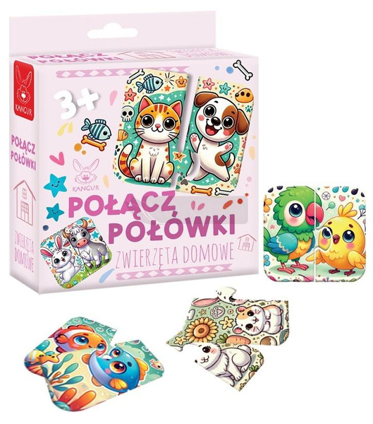 Dzieci bawią się w układanie połówek puzzli z domowymi zwierzątkami. Gra wspomaga u dzieci koncentrację, rozwój ruchu dłoni oraz wspomaga myślenie przestrzenne.