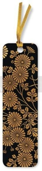 Pozłacana, papierowa zakładka do książki z ozdobną wstążką.