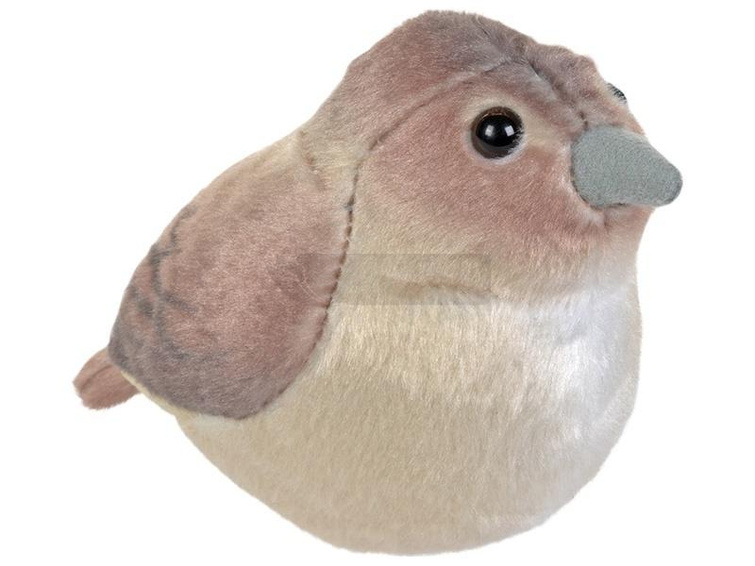 Pluszowy ptaszek z dźwiękiem nagranym w jego naturalnym środowisku. Po naciśnięciu wydaje dźwięk przypisany dokładnie temu gatunkowi, co potwierdza certyfikat Cornell Lab of Ornithology (USA) i CEntre Bioacoustique, Alpin.