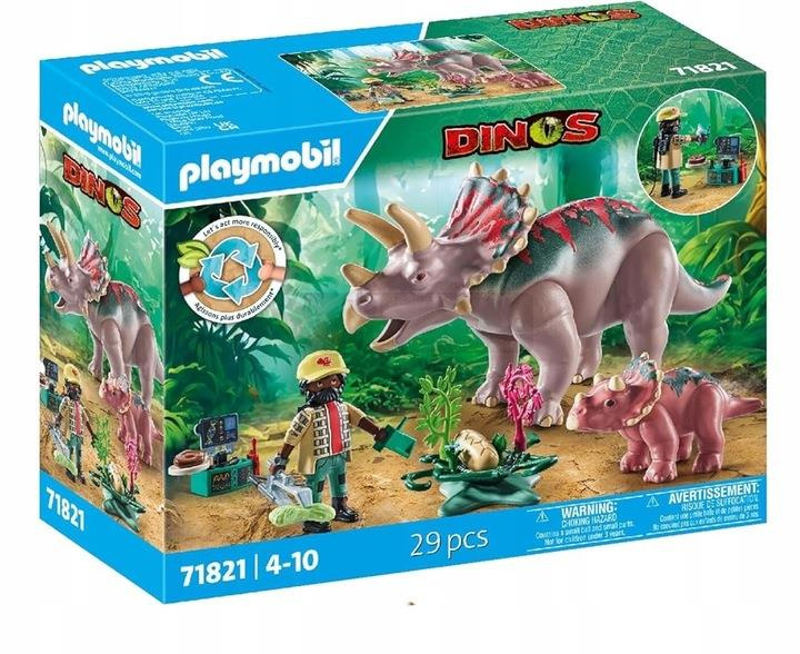 PLAYMOBIL DINOS 71821 Triceratops z młodym dinozaurem, dla dzieci 4-10 lat
