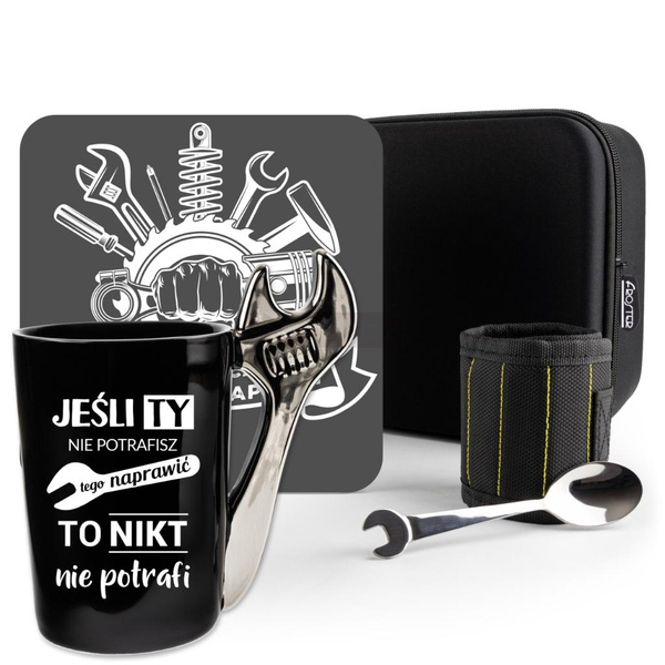 Gotowy do wręczenia na prezent bez konieczności dodatkowego pakowania. Napis na wkładce: Złota rączka, wszystko naprawi. Produkt w polskiej wersji językowej.