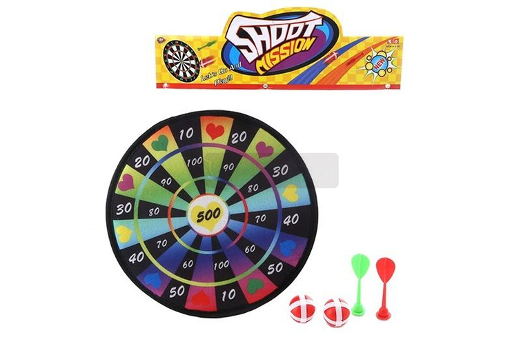 W zestawie: tarcza, piłka na rzep, strzałka na rzep, Pozostałe informacje: śr. tarczy 28 cm, wym. opak. folia 29,5 x 33,5 x 4 cm, 3+