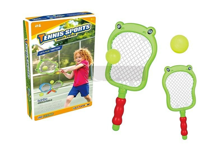 W zestawie: 2 rakietki w kształcie żabki, piłka, wym. produktu : 33 x 16,5 x 3 cm, wym. opakowania: 59 x 44 x 37 cm, 3+