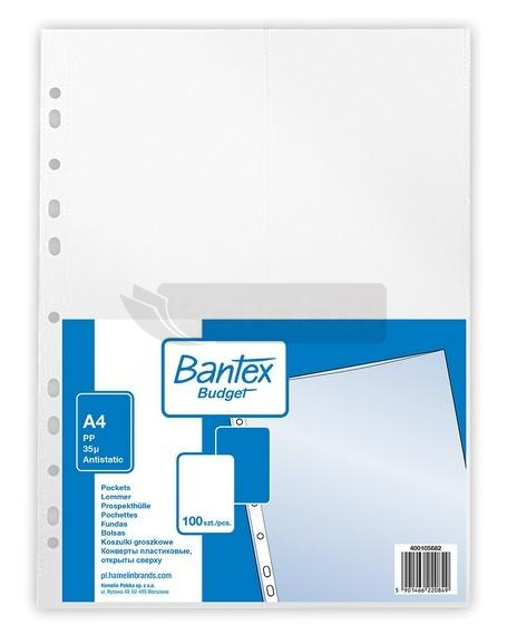 Groszkowe koszulki Budget w formacie A4, otwierane od góry. Przezroczysta, polipropylenowa folia jest antystatyczna i antyrefleksyjna, co ułatwia przechowywanie koszulek oraz zapewnia doskonałą czytelność dokumentów. 100 SZT. koszulek zapakowanych w folię, dzięki czemu zajmują niewiele miejsca.