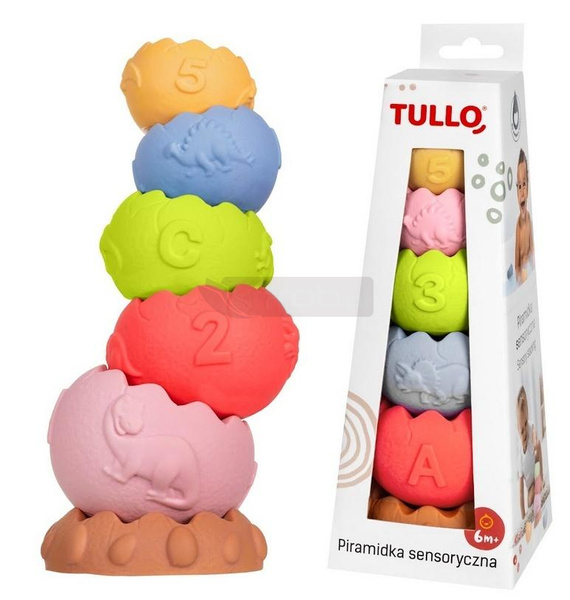 Miękka piramidka sensoryczna Tullo(R) to idealna zabawka dla dzieci, która łączy edukację i zabawę . Produkt wykonany z myślą o wszechstronnym rozwoju malucha, oferuje różnorodne możliwości zabawy i nauki dzięki wypukłym literkom, cyferkom oraz motywom dinozaurów. Co więcej, piramidka nie posiada otworów, co sprawia, że jest doskonała do zabaw w wodzie i utrzymania jej w czystości. Produkt został stworzony w Polsce, z dbałością o bezpieczeństwo i jakość.