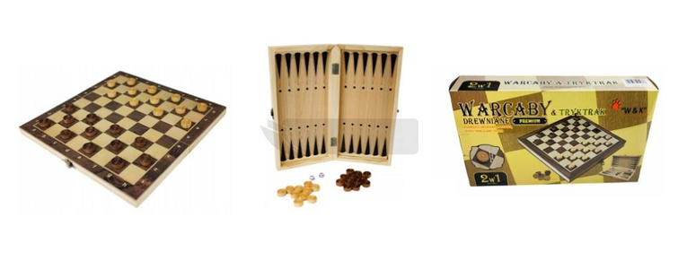 Gra 2w1 warcaby i tryktrak drewniane 29x29cm