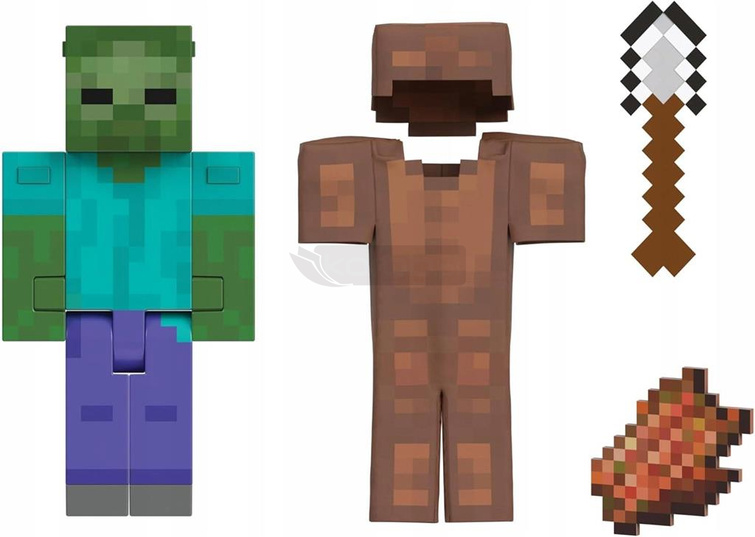 Dzięki tej figurce Zombie (ok. 14 cm) z poziomu diamentowego możesz przenieść swoją kolekcję Minecraft na zupełnie nowy poziom. W zestawie są też 4 autentyczne akcesoria: metalowa łopata, zbroja ze sztucznej skóry, hełm i „zgniłe mięso”. Wygląd Zombie doskonale oddaje niepowtarzalny pikselowy styl Minecraft! Załóż Zombie zbroję i odtwarzaj ulubione momenty z gry – zbroja pasuje też do figurek Alex lub Steve Diamentowy Poziom. Sprzedawane oddzielnie, zależnie od dostępności. To doskonały prezent dla graczy od 6 roku życia i fanów Minecraft, a szczególnie kolekcjonerów.