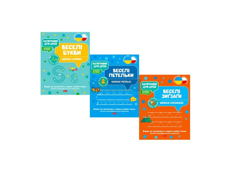 Kaligrafia dla dzieci wer. Ukraińska: / Kaligrafia dla dzieci to seria dwujęzycznych zeszytów zawierających ćwiczenia wspomagające pierwsze próby pisania. Dziecko uczy się poprawnie trzymać ołówek, ćwiczy cierpliwość i dokładność. Poszczególne zeszyty utrwalają znajomość liter i cyfr, uczą samodzielności, stanowiąc doskonałe wsparcie procesu dydaktycznego. Dołączone arkusze naklejek dostarczają przy okazji świetnej zabawy!