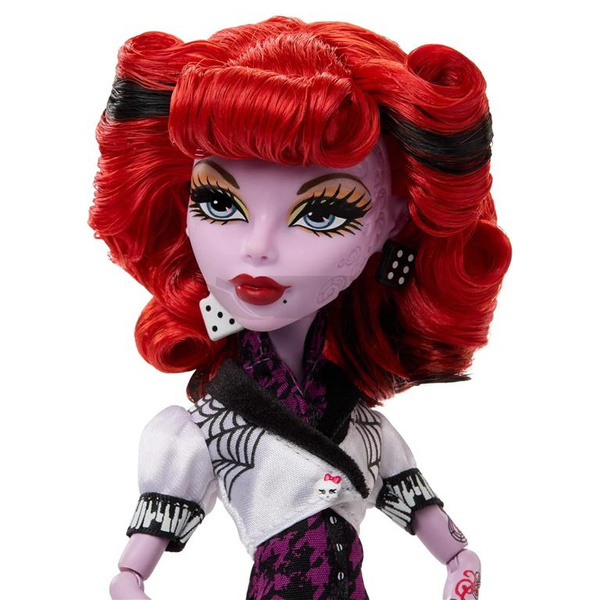 Uczniowie Straszyceum powracają jako wierne reprodukcje pierwszych, klasycznych lalek Monster High. Wprowadzona w 2012 roku Operetta ponownie wyłania się z katakumb, odzyskując tytuł najbardziej rock’n’rollowej upiorki o ognistym temperamencie. Towarzyszy jej pajączek Memphis „Daddy O” Longlegs, a w zestawie znajdują się również wyjątkowe akcesoria oraz sekretny pamiętnik. Ta kolekcjonerska lalka to świetny wybór dla wszystkich fanów Monster High oraz dzieci od 6. roku życia. W komplecie znajduje się podstawka dla lalki. Lalka nie stoi samodzielnie. Kolory i detale dekoracyjne mogą się różnić. Oryginalna ekipa Monster High powraca i wciąż zachwyca jak pierwszego dnia szkoły! Operetta prezentuje upiornie stylową kreację, składającą się z bluzki z kołnierzykiem, rybaczek oraz marynarki z krótkimi bufiastymi rękawkami. Jej charakterystyczna zawinięta grzywka doskonale komponuje się z popisowym serduszkowym monoklem i kolczykami w kształcie kostek, a pasek z pięciolinią oraz buty na obcasie ozdobione kluczem wiolinowym dopełniają całości w iście muzycznym stylu. W zestawie znajdują się również upiorne dodatki: gitara z pajęczynowym wzorem, pamiętnik, szczotka do włosów oraz oczywiście jej wierny towarzysz Memphis „Daddy O” Longlegs! Lalka Operetta posiada ruchome stawy w łokciach, nadgarstkach i kolanach – można ją ustawić na dołączonej podstawce, by cieszyć się zabawą lub dumnie wyeksponować ją w swojej kolekcji. Fani mogą zebrać pozostałe lalki Monster High z tej wyjątkowej serii klasycznych reprodukcji i odtworzyć szkolne spotkanie po latach! Sprzedawane oddzielnie, zależnie od dostępności. Zawartość zestawu: 1 lalka Monster High Operetta w ubranku, 1 figurka zwierzątka, 1 gitara, 1 szczotka do włosów, 1 pamiętnik oraz 1 podstawka dla lalki. Lalka nie stoi samodzielnie. Kolory i elementy dekoracyjne mogą się różnić.