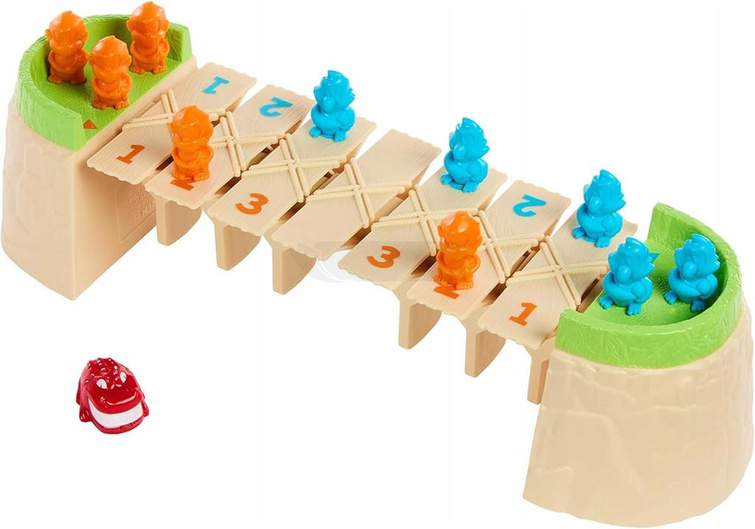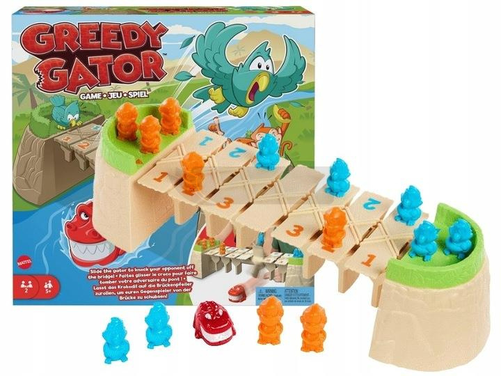 Gra dla dzieci Głodny aligator to szalona zabawa, w której gracze starają się jak najszybciej przesunąć swoje pionki na drugą stronę mostu. Ale uwaga! W wodzie czai się podstępny aligator, który strąca pionki, zanim dotrą do celu. Gracze przesuwają aligatora pod mostem, aby przekonać się, o ile miejsc mogą się ruszyć podczas swojej kolejki. Ale gdy to zrobią, mogą strącić z mostu pionki przeciwników lub własne. Wygrywa pierwszy gracz, który przeprowadzi trzy swoje pionki bezpiecznie przez most. Doskonały prezent dla fanów gier od 5 roku życia.