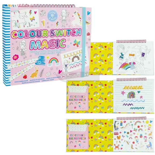 Zestaw Magia Kolorów to niekończąca się kreatywna zabawa! Dzięki magicznemu pisakowi możesz zamieniać kolory i tworzyć niesamowite wzory. Idealny do nauki pisania, rysowania i rozwijania zdolności manualnych! Każdy zestaw zawiera 10 stron do rysowania, 5 stron do kolorowania, 6 pisaków zmieniających kolor, 1 magiczny pisak, 5 stron w linie do pisania oraz 2 strony z naklejkami. Zestaw Magia Kolorów to nie tylko wyjątkowe pisaki, ale także książeczka pełna kreatywnej zabawy!