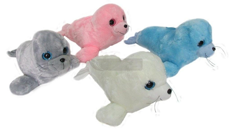 Milutkie maskotki - zwierzęta wodne o długości 50cm. Cena dotyczy 1 sztuki. Do wyboru 4 kolory. Maskotka dźwiękowa - wydaje głos po naciśnięciu przycisku.