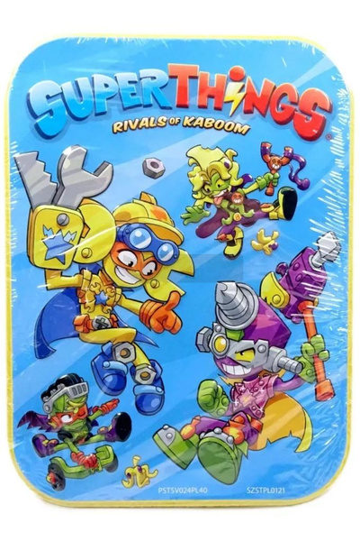 W kolekcjonerskiej kolorowej puszce SuperThings znajduje się książka w oprawie twardej z nowym wyjątkowym zbiorem komiksów, który przygotowaliśmy z myślą o wszystkich fanach SuperThingsów. Do książki dołączone są trzy figurki SuperThings, które przedstawiają bohaterów z piątej części kolekcji. Puszka doskonale nadaje się do przechowywania figurek SuperThings!